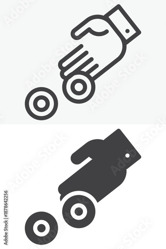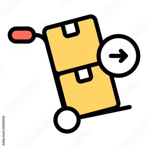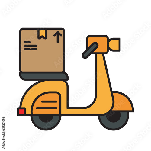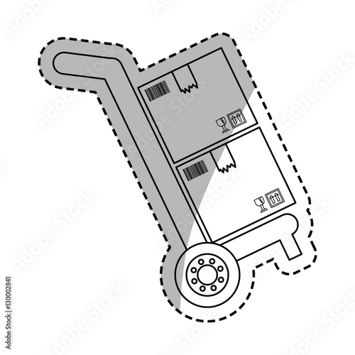 Smart wheeled robot assistant pomáhá s doručením balíčku vektorové ploché ikony izolovaných na bílém pozadí. Futuristická služba, koncept robotické technologie AI