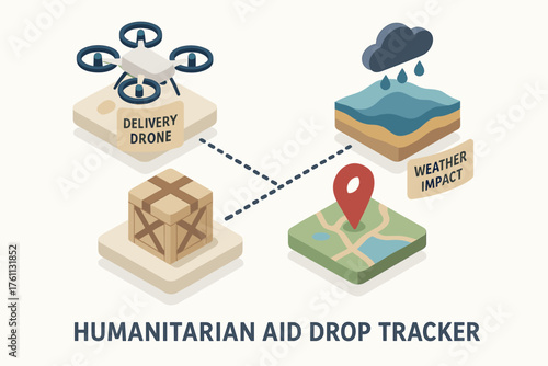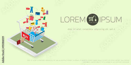 Dron řízený chytrým telefonem s izometrickou ilustrací vektoru balíků. Rychlé moderní dodání designovým prvkem quadcopter concept s kopírovacím prostorem pro plakát, banner atd.