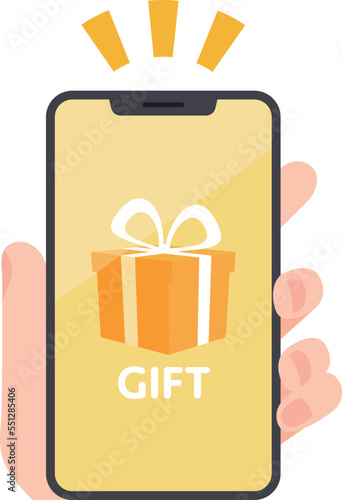 Smartphone s bonus dárek na obrazovce vektorové ikony izolovaných na bílém pozadí