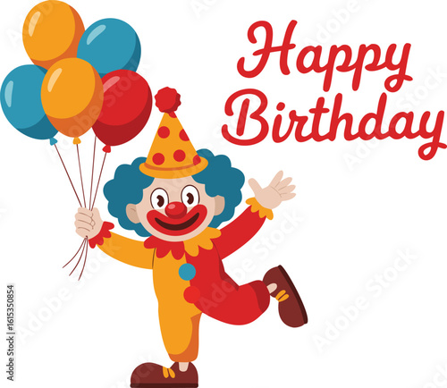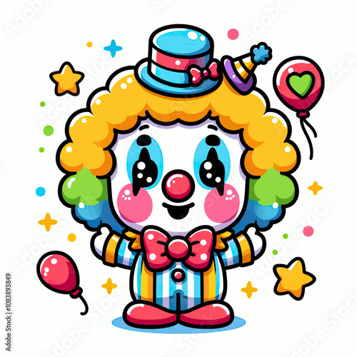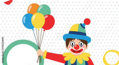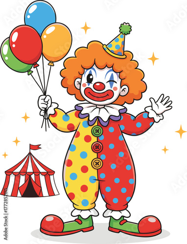 Usmívající se klaun kreslená postavička. Vektorová ilustrace v komiksovém pop artovém stylu.