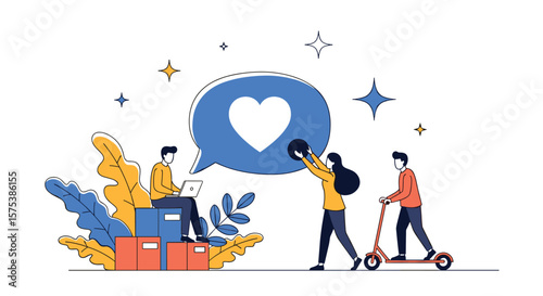 Obrovská snowboardová bota, mužské postavy se snowboardy, vektorová ilustrace. Snowboarding zařízení a zařízení, zimní sportovní aktivity koncept pro web banner, webové stránky atd.