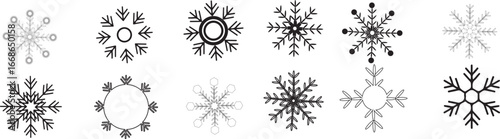 Sněhové vločky čelenka na Vánoce a Nový Rok Party oslava vektorové ikony izolovaných na bílém pozadí.