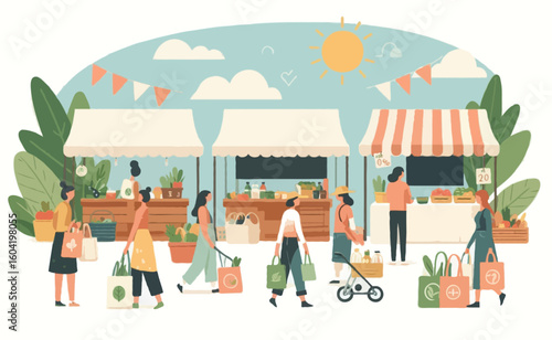 Sociální camping vektor web banner šablony. Lidé, kteří sdílejí stejné zájmy, se setkávají na táboře, jíst grilované maso, trávit čas společně. Sociální kemp nebo kemp v lese, plochá ilustrace.