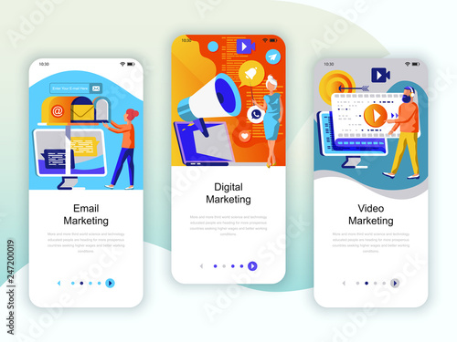 Sociální média, závislost na smartphonu. Živé komunikační problémy s partnerem. Mobilní aplikace onboarding obrazovky. Vektor banner šablona pro webové stránky a mobilní vývoj. Webové stránky, UI design ilustrace