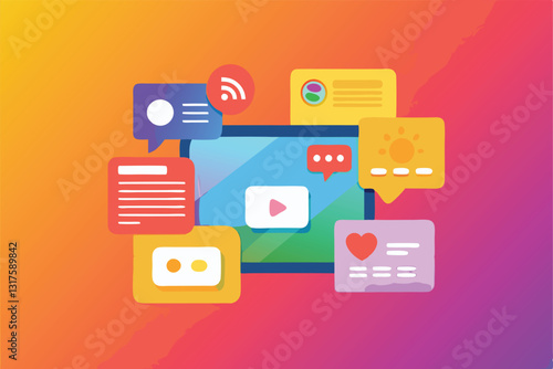 Sociální média pro komunikaci vstupní stránky vektorové šablony návrhu. Servisní nebo aplikační software pro ilustraci sítí