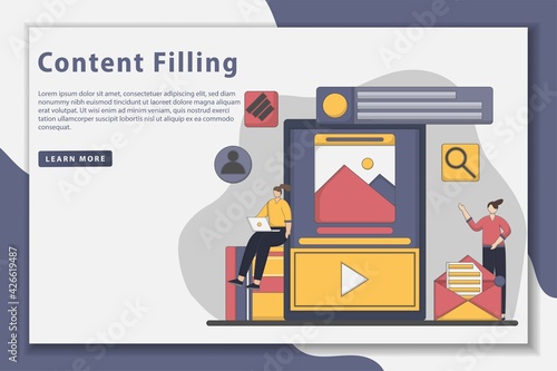 Marketing sociálních médií, obsah blogu, mobilní zdroj. Vektorové webové stránky design šablony. Ilustrace konceptu webové stránky vstupní stránky.