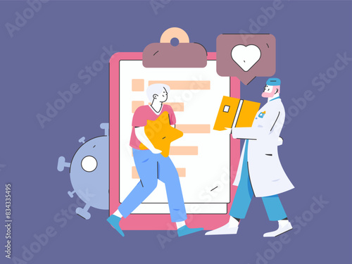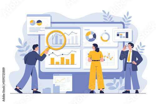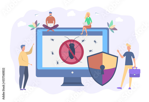 Obrovský počítačový monitor a smartphone, malé postavy se sociálními sítěmi, jako jsou symboly, vektorové ilustrace. Komunikační technologie sociálních médií, chat, koncept video zpráv pro webovou stránku atd