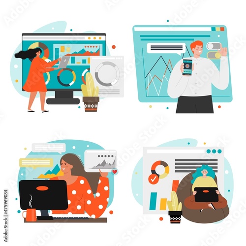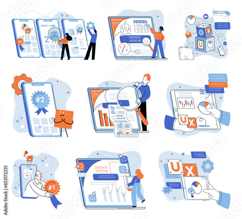 Vývojáři softwaru, inženýři kódování, programování, ploché vektorové izolované ilustrace. Počítačový program, vývoj softwaru a programování webu.