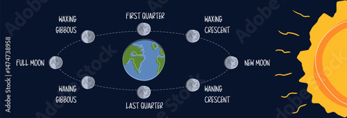 Hlavní měsíce sluneční soustavy seřazené podle velikostního diagramu. Vektorový vzdělávací plakát, vědecká infografika, prezentační šablona. Koncept astronomické vědy.