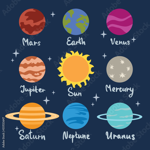 Vrstvený papír střih styl Uran, Neptun, Venuše, Merkur fantastické planety sluneční soustavy, vektorové ilustrace izolovaných na bílém pozadí. Astronomie pro děti.