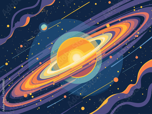 Diagram slunečního větru. Vektorové ilustrace Slunce, planety Země s magnetosheath, plazmasféra, magnetosheath, plazmový list atd. Vzdělávací plakát, vědecká infografika, prezentační šablona.