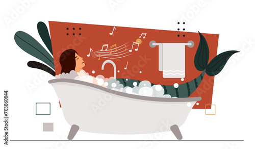 Vektorové ilustrace mladé ženy se těší aroma koupel postupy. Spa salon service concept designový prvek v plochém stylu.