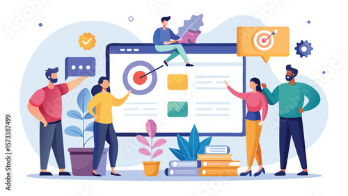 Vektorová ilustrace velkého počítače s raketovým diagramem na displeji, inženýři malých lidí, astronaut. Výpočetní technika a kosmický výzkum, koncept raketové vědy pro webový banner, webovou stránku atd