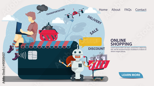 Šablona vstupní stránky prostoru. Vektorové ilustrace technologií průzkumu vesmíru. Koncepce výpočetní techniky a průzkumu vesmíru pro vývoj webových stránek a mobilních stránek.