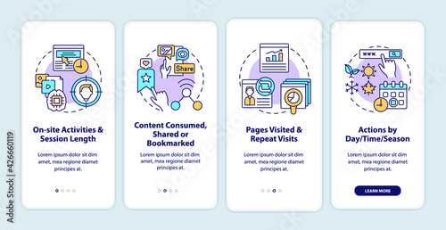Mobilní aplikace pro sledování sportovních aktivit. Zdravý životní styl, fitness cvičení, fitness gadget. App onboarding obrazovky. Vektorová šablona banneru pro vývoj mobilních webových stránek. Ilustrace designu webových stránek