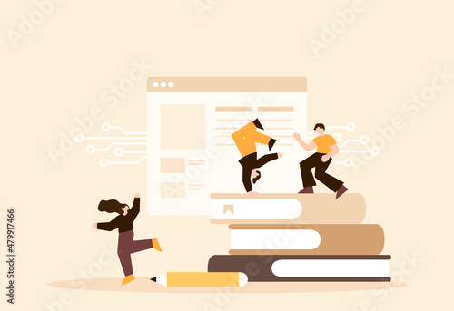 Sportovní a fitness aktivity. Mladá žena dělá kangoo aerobní cvičení, ploché vektorové ilustrace. Kangoo skoky trénink. Fitness tělocvična cvičení. Aktivní a zdravý životní styl.