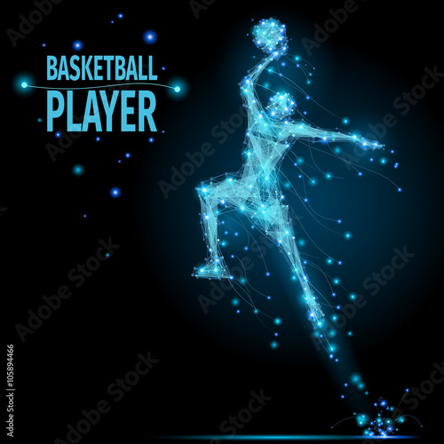 Sport concept vektorové plakát banner šablony. Běžící dívčí silueta, nízké poly drátěné pletivo. Ilustrace polygonálního uměleckého stylu se Spojenými body, čarami, tvary.