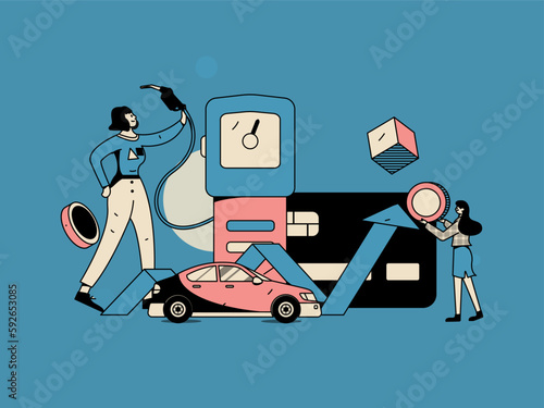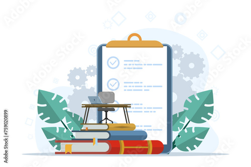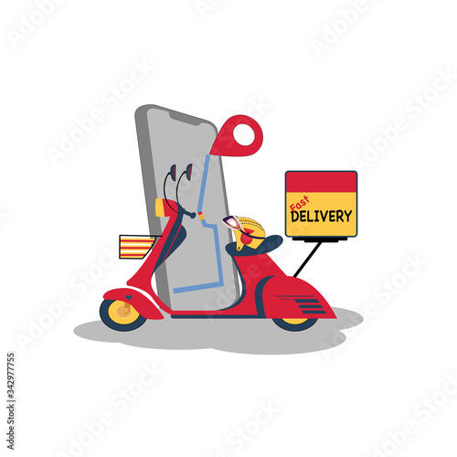 Kondiční trénink s online trenérem vector flat ilustrace. Žena dělá sportovní cvičení spolu s fitness instruktorem na obrovské obrazovce smartphonu. Online osobní sportovní trenér mobilní aplikace.