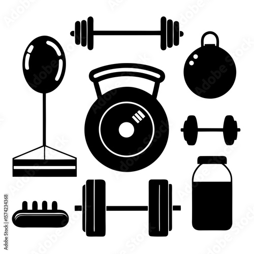 Sportovní vektorové plakát. Silná svalová stavba těla, powerlifting a koncept korekce hmotnosti. Fitness tělocvična klubové vybavení pro trénink cvičení design ilustrace. Podpora zdravého aktivního životního stylu