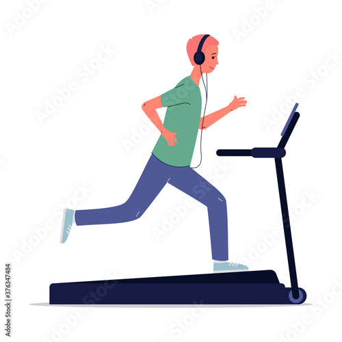 Fitness žena dělá tricep činka úplatky na lavičce, vektorové ploché ilustrace izolované na bílém pozadí. Hmotnostní cvičení, silový trénink, sport a zdraví.