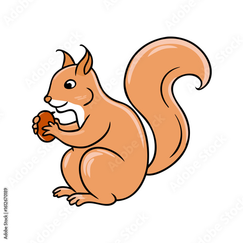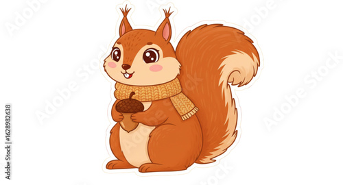 Veverka vektor. Roztomilý lesní zvíře kreslená postavička ilustrace. Chipmunk s podzimní listí věnec na hlavě a parta ikona izolovaných na bílém pozadí