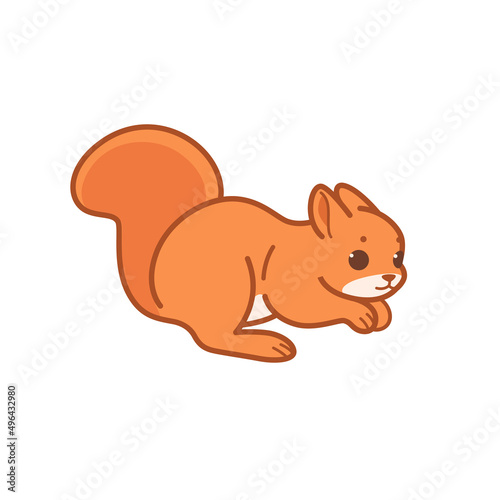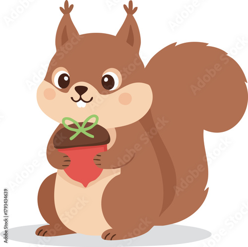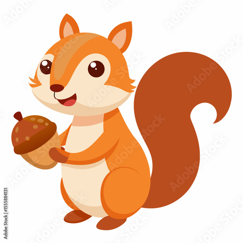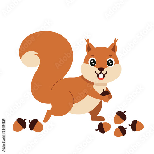 Veverka vektor. Roztomilý lesní zvíře kreslená postavička ilustrace. Chipmunk s podzimní ořechy sklizeň ikona izolovaných na bílém pozadí