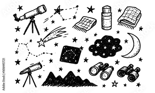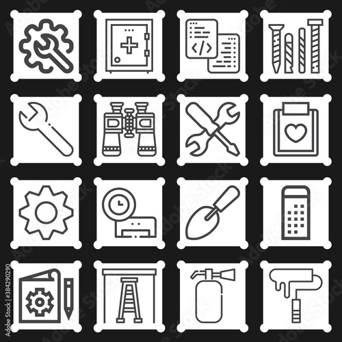 Stage spotlight set, ploché vektorové izolované ilustrace. Profesionální osvětlovací zařízení pro divadelní představení, fotoateliér,filmovou produkci, koncerty, show atd.