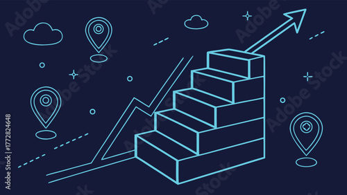 Schodiště k růstu podnikání, finanční cíl, šablona návrhu banneru vektorového plakátu. Nízké poly umění, polygonové drátěné pletivo. Obchodní úspěch, cíl, cesta k úspěchu.