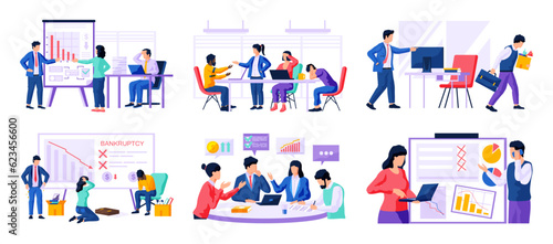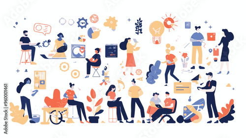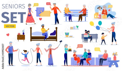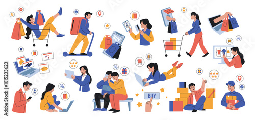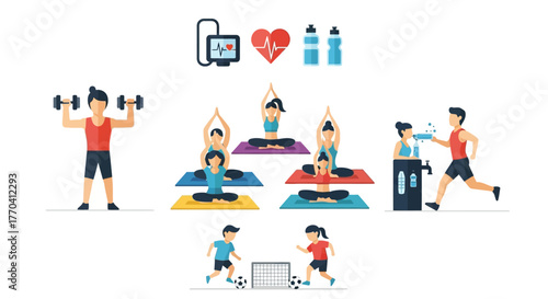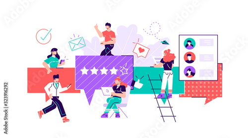 Státní dohled, vektorové ploché ilustrace. Lidé chodí po ulici s nainstalovanými cctv kamerami. Video dohled, Veřejná bezpečnost, rozpoznávání obličeje cctv technologie.