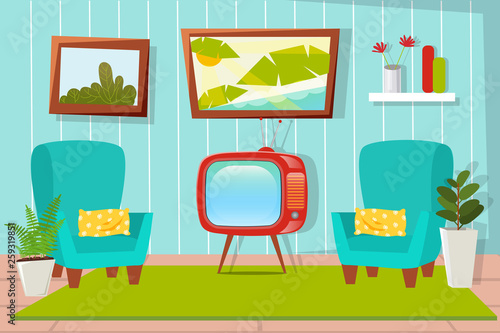 Domácí interiér pro pobyt doma a dělat jógu téma plakát, leták, banner, vektorový plochý styl designu ilustrace. Online jóga, zůstaňte doma v karanténě. Prevence šíření nemoci koronavirus COVID-19.