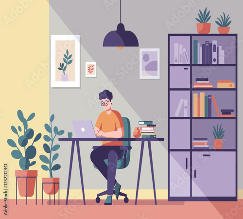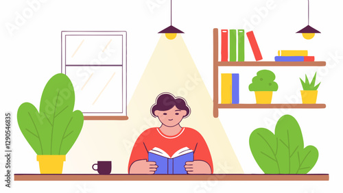 Zůstaňte doma vektorová šablona plakátu. Lidé čtou knihy, dělají dort, cvičí jógu doma a dodržují pravidla karantény viru corona, omezení k zastavení šíření nemoci COVID-19. Vlastní izolace.