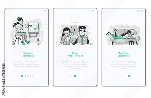 Žaludek zkontrolovat mobilní aplikace onboarding obrazovky. Menu banner vektorová šablona pro vývoj webových stránek a aplikací. Gastroskopický postup, lékařský výzkum.