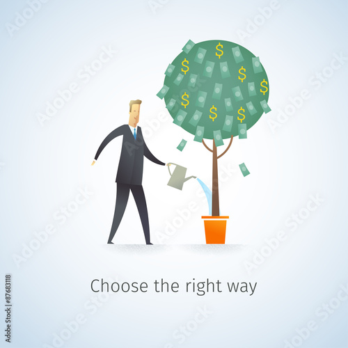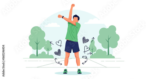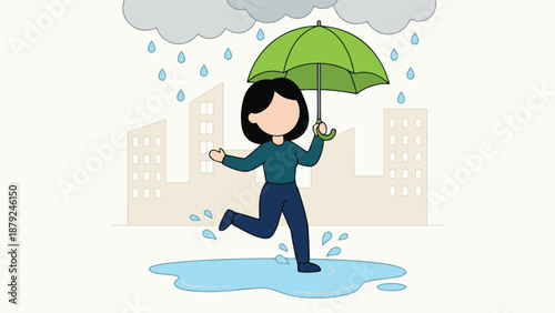 Bouřlivé, větrné a deštivé počasí koncept vektorové ilustrace. Mladý muž chycen v silném dešti s bouřkou a blesky, plochý styl designu.