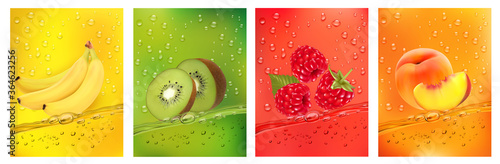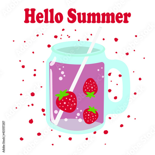 Strawberry tonic plakát, šablona návrhu banneru. Vektorové realistické ilustrace ovoce nealkoholických nápojů hliníku může balení mock up, kostky ledu, bubliny.