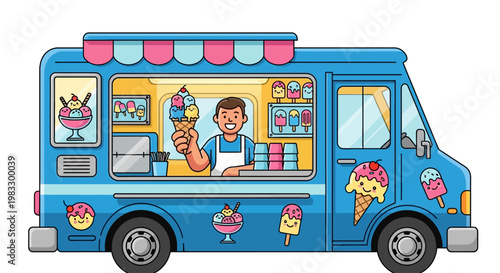 Coffee truck, coffeeshop a Pouliční kavárna s baristickými mužskými postavami, které vyrábějí horké energetické nápoje pro návštěvníky, vektorové ploché ilustrace. Street food bus, venkovní kavárna, Terasa, koncept kavárny.