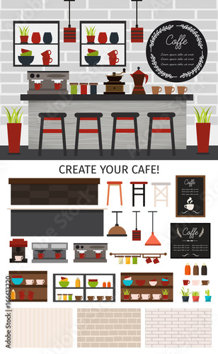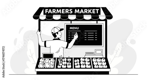 Pouliční kavárna s Barista dělat kávu, ploché vektorové ilustrace. Pouliční kavárna malý podnik.