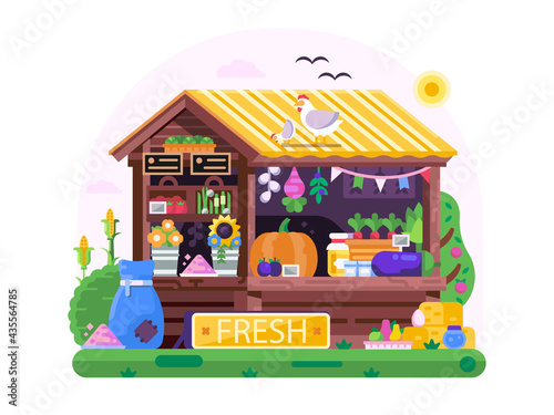 Street food festival koncept vektorový banner. Lidé prodávají jídlo ze stánků v parku. Hot Dog vozík.