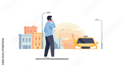 Vektorová ilustrace muže mávajícího na krupobití taxíku. Street people plochý designový prvek, ikona izolovaná na bílém pozadí.