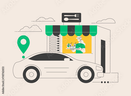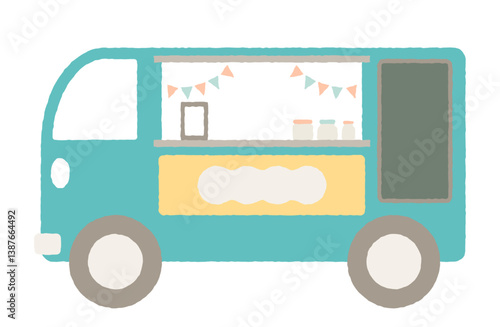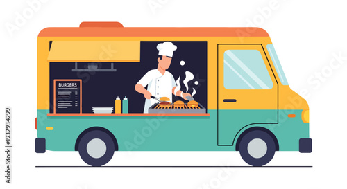 Vektorová ilustrace street food truck a prodejce zmrzliny. Zmrzlinový mobilní obchod pro festival pouličního jídla. Street people plochý designový prvek, ikona izolovaná na bílém pozadí.