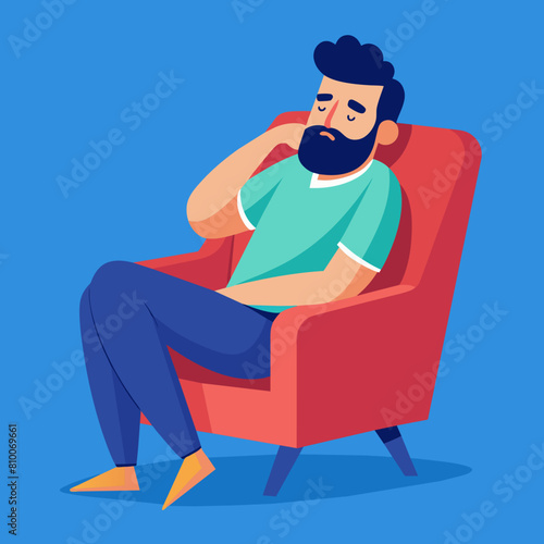 Zdůraznil unavený muž sedí v křesle vektorové ikony izolovaných na bílém pozadí