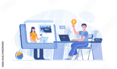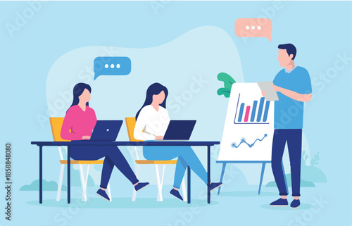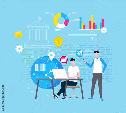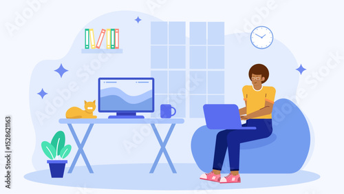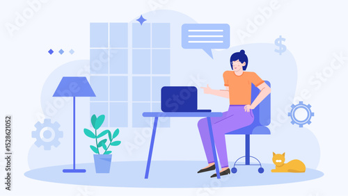 Student studuje cizí jazyky pomocí online vícejazyčného překladače, ploché vektorové ilustrace. Software pro překlad textu a zvuku. Koncept učení jazyků.