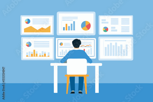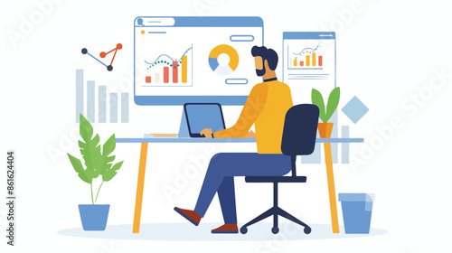 Student studuje cizí jazyky pomocí online vícejazyčného překladače, ploché vektorové ilustrace. Software pro překlad textu a zvuku. Koncept učení jazyků.