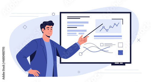 Student chůze poslouchat hudbu na mobilním telefonu vektorové ikony. Chlap s gadget závislost izolovaných na bílém pozadí