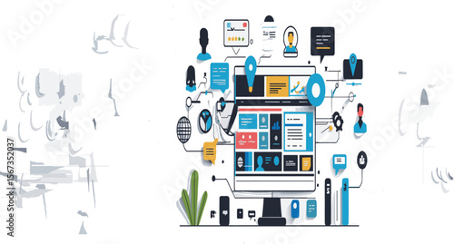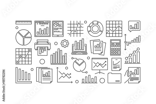 Studie koncepce vektorové ilustrace. Moderní designový prvek s plochým stylem tenké linie se vzdělávacími symboly, ikonami pro bannery webových stránek a tištěnými materiály.