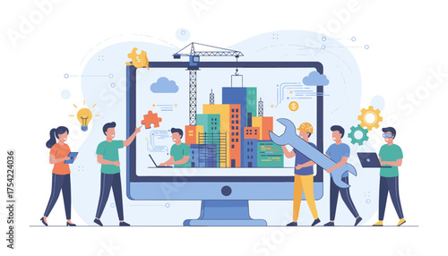 Studie koncepce vektoru plochý styl designu ilustrace. Obrovská planeta Země zeměkoule a mikro postavy studenti nesoucí hromadu knih, kalkulačka. Vzdělávací kurz, studium v zahraničí.