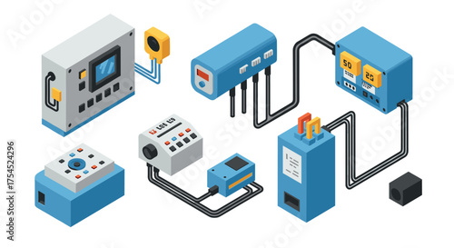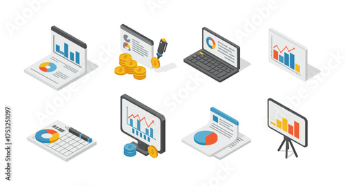 Sada ikon metra. Vektorové ploché izometrické ilustrace podzemních položek metra, jako je vlak metra, tunel, nástupiště metra, stanice, eskalátor, vstupní brána nebo turniket, Automat na lístky atd.