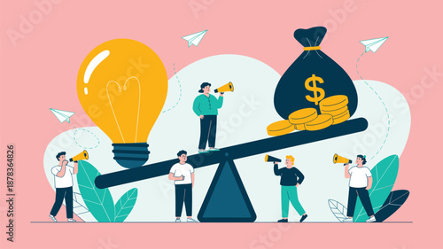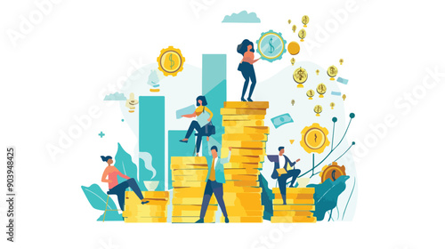 Podnikatel superhrdina stojící na obrovském zlatém poháru trofej, obchodní tým slaví vítězství, vektorové ilustrace. Úspěch, tým úspěchy koncept pro web banner, webové stránky atd.