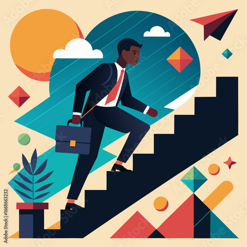 Úspěšný koncept růstu podnikání vektorová ilustrace. Bussinessman clmbing up.