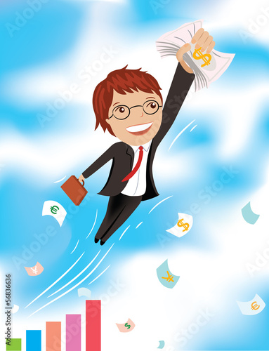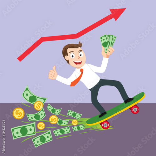 Úspěšný podnikatel pití koktejl a při odpočinku na spoustu peněz. Ilustrace konceptu Business vector v kresleném stylu.