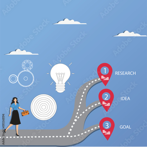 Podnikatel chůze po schodišti k cíli, vektorové vrstvené papír střih styl ilustrace. Cesta k úspěchu, obchodní cesta, úspěšné dosažení cíle, kariérní postup, koncept výzvy.